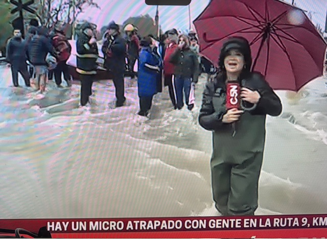 Enviados de medios como C5N también cubrieros los efectos de las aguas en las zonas de Campana y Zárate.