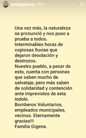 El testimonio de Jandy Gigena en nombre de su familia que ves a continuación, refleja el sentimiento de muchos vecinos ante las difíciles y angustiantes horas vividas.