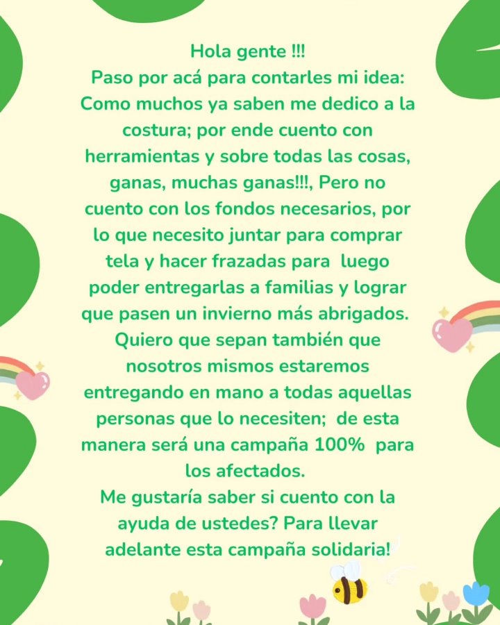 Entre todos podemos donar para que nuestra vecina, Pato Galvan gran Modista y Costurera pueda confeccionar frazadas para las familias que necesiten.