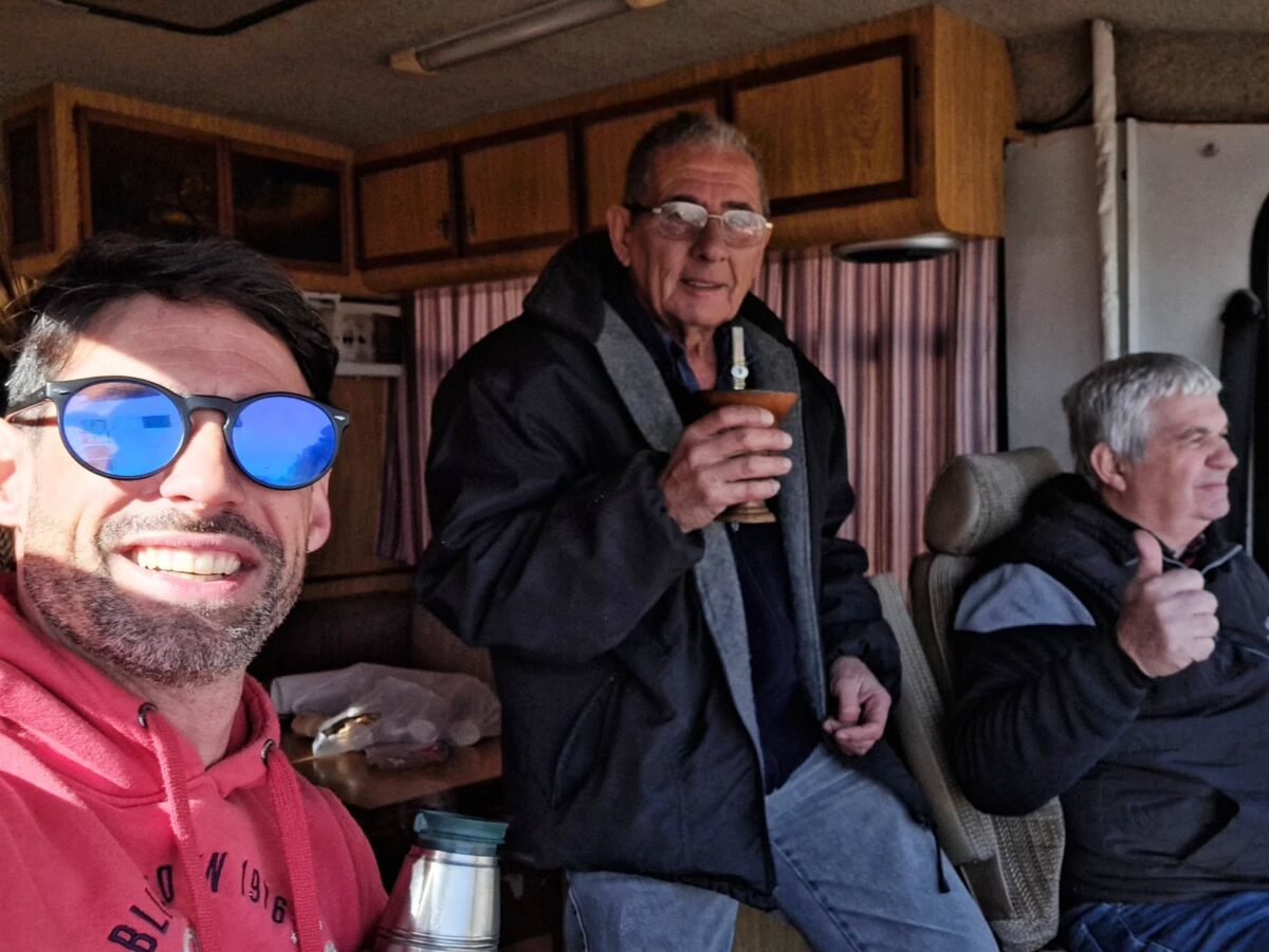 Carelle junto a su padre y un amigo, en la casa rodante rumbo a una carrera.