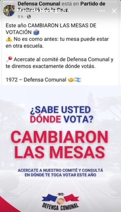 Interés general ELECCIONES. AVERIGUÁ ANTES DONDE VOTÁS. HUBO CAMBIOS DE MESAS By epocadigital - 16/08/2025 0 2280 Facebook Twitter Google+ Pinterest WhatsApp PRESTÁ ATENCIÓN E INFORMATE ANTES. Podés consultar en los padrones electorales, en las sedes partidarias en Exaltación de la Cruz