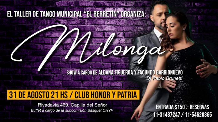 Barrios A bailar milonga se ha dicho! By epocadigital - 15/08/2019 0 1141 Facebook Twitter Google+ Pinterest WhatsApp UN ESPECTACULO ATRAYENTE EN EL CLUB HONOR Y PATRIA. A cargo del Taller de Tango Municipal “El Berretín”