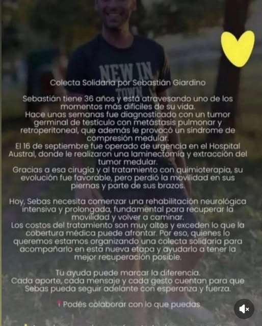 Por eso, ex compañeros, entrenadores, amigos y familiares se unieron para lanzar una colecta solidaria, con el objetivo de acompañarlo en esta nueva etapa y ayudarlo a acceder al tratamiento que necesita. “Tu ayuda puede marcar la diferencia”, expresaron desde la campaña, que busca reunir aportes económicos y apoyo emocional para que Sebastián pueda seguir adelante con esperanza y fuerza.