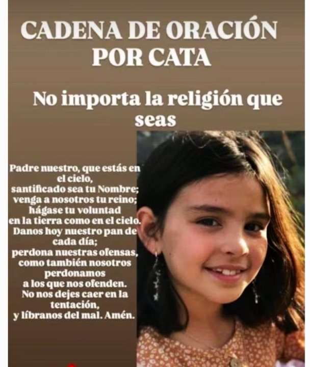 Dios te salve María Llena eres de gracia El Señor es contigo Bendita Tú eres entre todas las mujeres y bendito es el fruto de tu vientre Jesús Santa María, Madre de Dios, ruega por nosotros pecadores y por Catalina, ahora y en la hora de nuestra muerte Amén