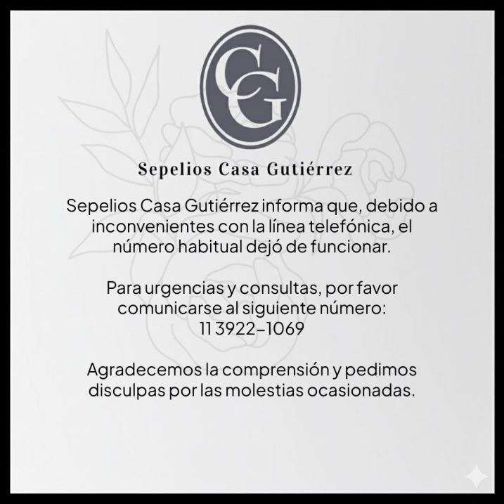 Sepelios Casa Gutiérrez informó que, debido a inconvenientes con la línea telefónica, el número de teléfono habitual dejó de funcionar.