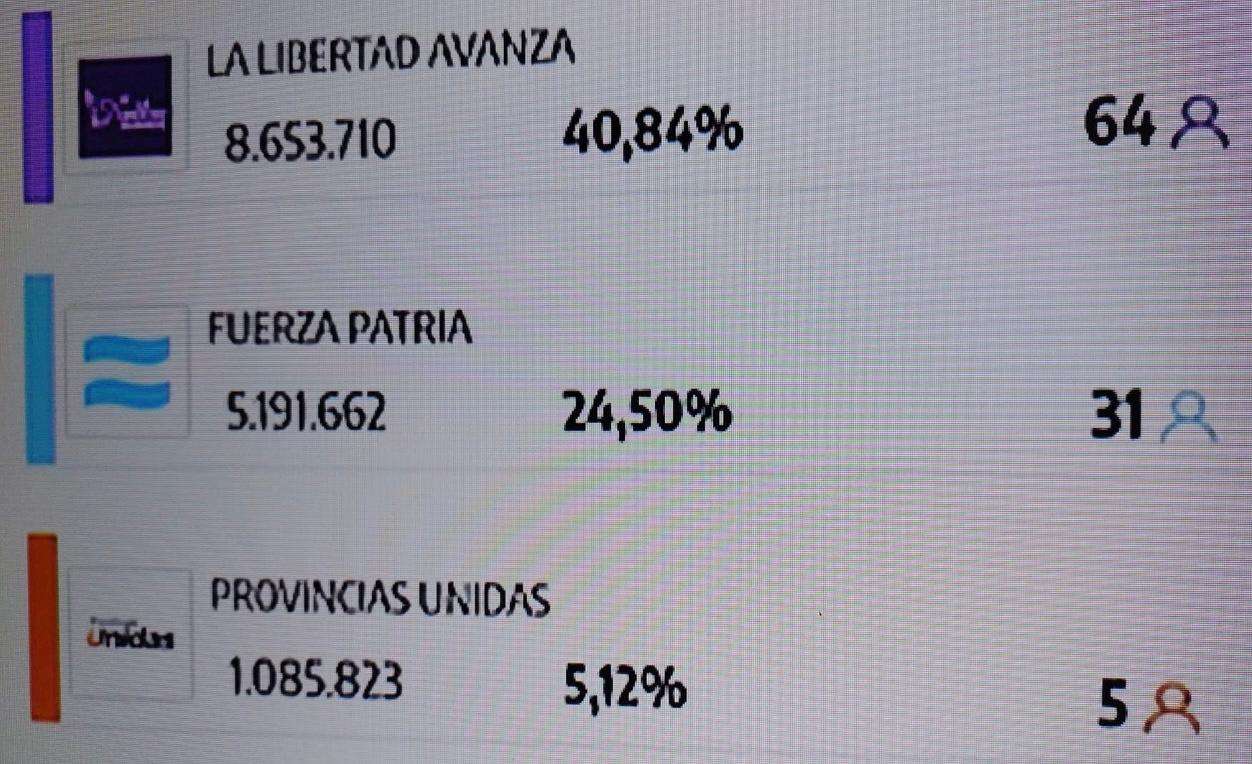 LLA 50.3. Fuerza Patria 33,29. Frente de Izquierda 3.41