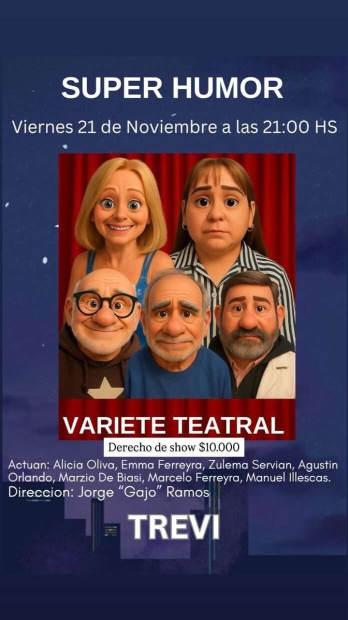 Espectáculos EN TREVI, EL HUMOR SE PONE SÚPER ESTE 21 DE NOVIEMBRE By epocadigital - 13/11/2025 0 958 Facebook Twitter Google+ Pinterest WhatsApp VARIETE TEATRAL, Y A PASARLO DIVERTIDO!