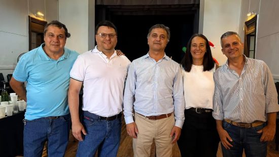 Colaboradores cercanos al intendente, estuvieron en el tradicional brindis de fin de año.El intendente junto a mujeres funcionarias y personal de la gestión. La secretaria de gobierno, María Luz Bozzani, Norma Santillan entre otras.De hija a madre. Mariela Nanni, titular del HCD le hace entrega a su madre de una distinción.