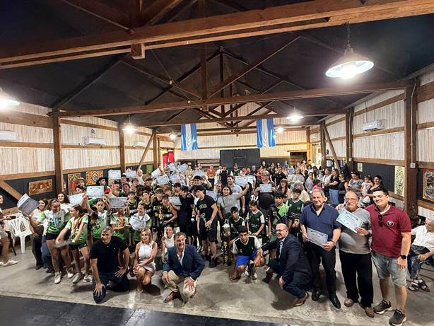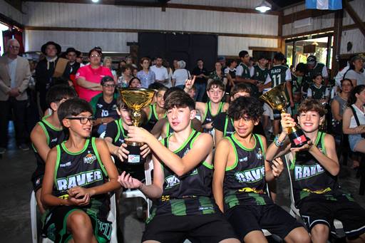 Los chicos del basquet triunfadores, disfrutaron el reconocimiento por lo hecho.