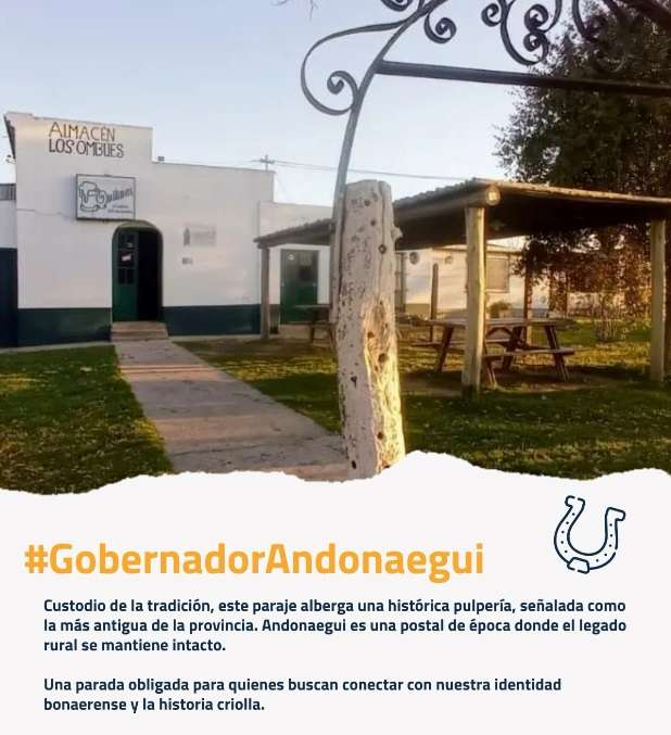 Gobernador Andonaegui Custodio de la tradición, este paraje alberga una histórica pulpería, señalada como la más antigua de la provincia. Andonaegui es una postal de época donde el legado rural se mantiene intacto. Una parada obligada para conectar con nuestra identidad bonaerense.