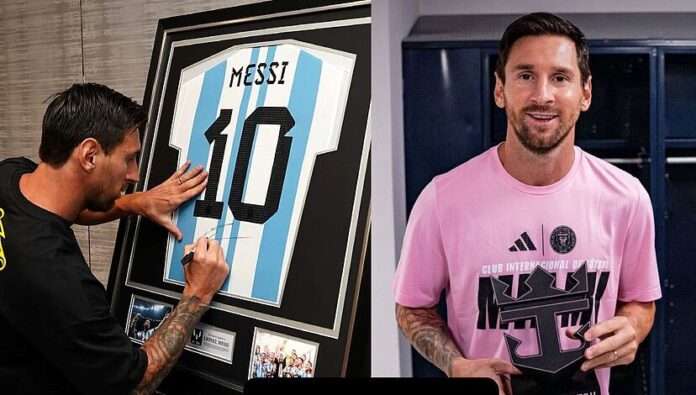 @telemundodeportes 🤩 ¡Un momento que no todos pueden vivir! Pedirle un autógrafo a Lionel Andrés Messi ✍️🇦🇷 🎥: IG/yanilatorre #lionelmessi #messi #argentina #intermiami #futbol #soccer