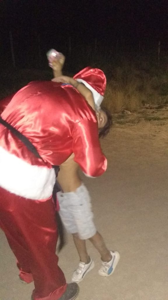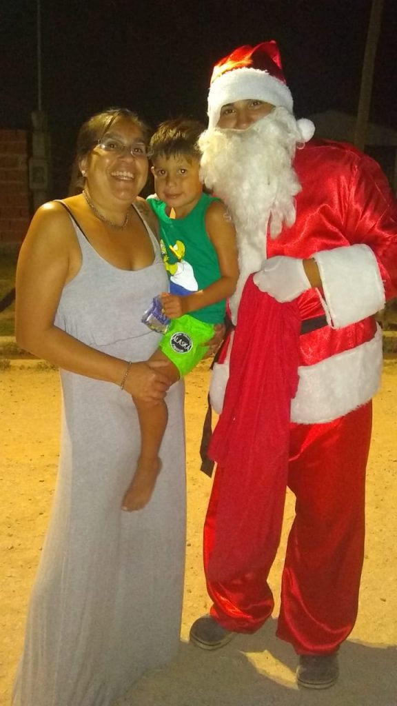 Y gestos surgidos del corazón como los de Diego Falcinelli vestido de Papá Noel junto a Iván y Ariel Pintos, haciendo el esfuerzo de sus propios bolsillos, valen la pena por cierto destacarse. Los tres, adquirieron distintos tipos de golosinas, que luego separadas en bolsitas, en nochebuena y primeros momentos de la navidad, fueron entregando a niñas y niños de Arroyo de la Cruz, que vivieron como todos deberían hacerlo, el momento mágico de estar junto a Papá Noel.