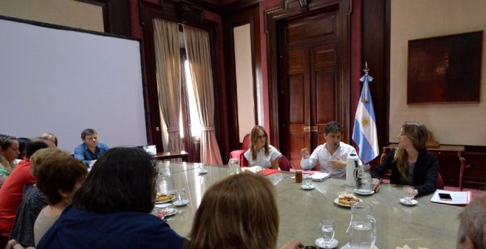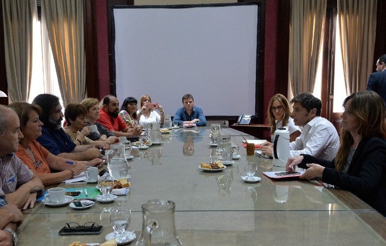 El gobernador de la provincia de Buenos Aires, Axel Kicillof, recibió a representantes de los gremios del Frente de Unidad Docente Bonaerense (FUDB). También estuvieron el jefe de gabinete, Carlos Bianco, la directora general de Cultura y Educación, Agustina Vila, y la ministra de Trabajo, Mara Ruiz Malec.