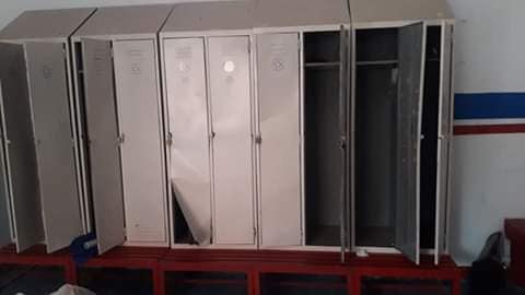 Como se ve en la foto, quienes ingresaron forzaron los lockers que se utilizan para guardar elementos de todo tipo, llevándose botines, zapatillas y ropa. También sustrajeron gran cantidad de pelotas y el juego completo de indumentaria que utiliza la Primera División.