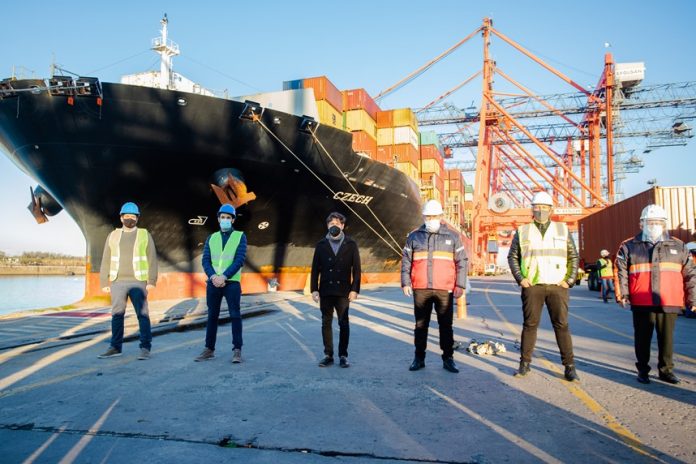 El gobernador de la provincia de Buenos Aires, Axel Kicillof, recibió en el puerto de Dock Sud, al buque portacontenedores Czech que trajo desde China el segundo cargamento de insumos médicos adquirido por el Estado provincial.