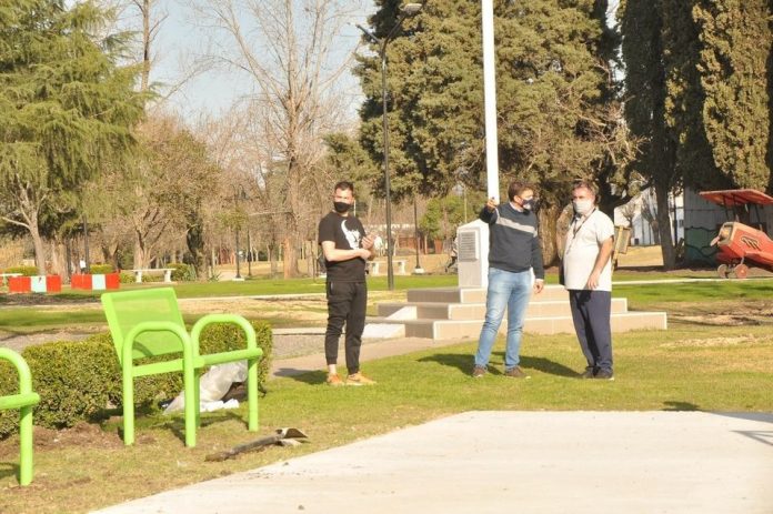 El jefe comunal visitó ese sector, que desde la semana pasada cuenta con un moderno sistema de riego, para mantener la plaza en condiciones de uso, una vez que haya finalizado la pandemia.