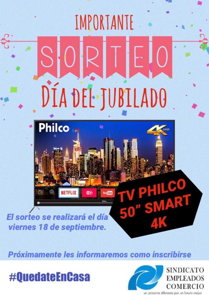 En adhesión al Día del Jubilado, el Sindicato de Empleados de Comercio Zárate, que abarca a los empleados del sector en Exaltación de la Cruz, ha organizado un sorteo cuyo premio consistía en un televisor Smart 4K de 50 pulgadas.