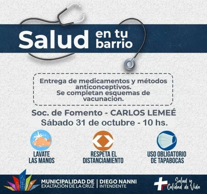 El sábado (31/10) desde las 10 de la mañana, desembarca en la sociedad de fomento de Carlos Lemeé la propuesta “Salud en tu barrio”. Es parte de una propuesta sanitaria complementaria a las acciones por el coronavirus.