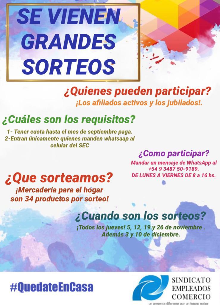 Empleados de ComercioLa gente Mirá los sorteos del Sindicato de Empleados de Comercio By epocadigital - 03/11/2020 0 1079 Facebook Twitter Google+ Pinterest WhatsApp PRESTÁ ATENCIÓN. El Sindicato Empleados de Comercio Zárate, ha programado una serie de importantes sorteos. Mirá acá, quienes pueden participar, los premios, cuando se realizan los sorteos.