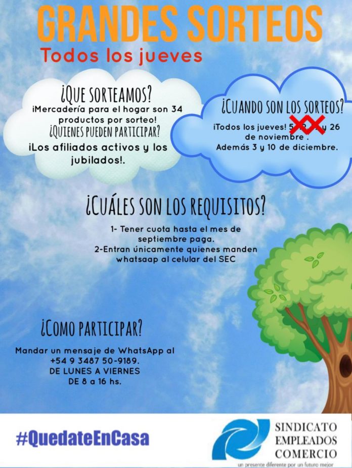 Empleados de Comercio Empleados de comercios, siguen los sorteos todos los jueves! By epocadigital - 02/12/2020 0 880 Facebook Twitter Google+ Pinterest WhatsApp PRESTÁ ATENCIÓN Y PARTICIPÁ. Y TAMBIÉN EL MENSAJE PARA OPONERSE A LA VIOLENCIA CONTRA LAS MUJERES. VIVAS, SIEMPRE VIVAS