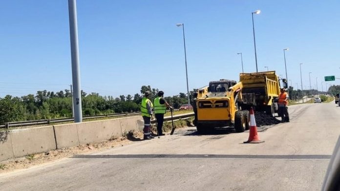 Al momento, las obras se habían centrado en el tramo en dirección sentido a Campana, en donde se retiró el material que se encontraba suelto y se procedió a recubrir los baches con asfalto en caliente.