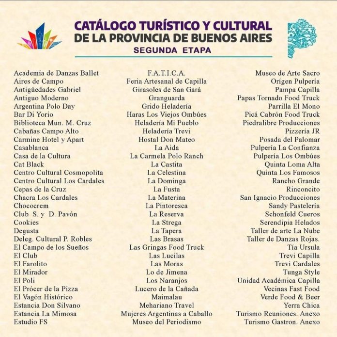Finalizó la distribución de los fondos correspondientes a la segunda etapa del Plan de Fortalecimiento para los espacios/establecimientos locales, inscriptos en el Catálogo de Turismo y Cultura de la Provincia de Buenos Aires, tanto públicos como privados, que calificaron oportunamente para este programa de asistencia en pandemia del Ministerio de Producción, Ciencia e Innovación Tecnológica provincial.