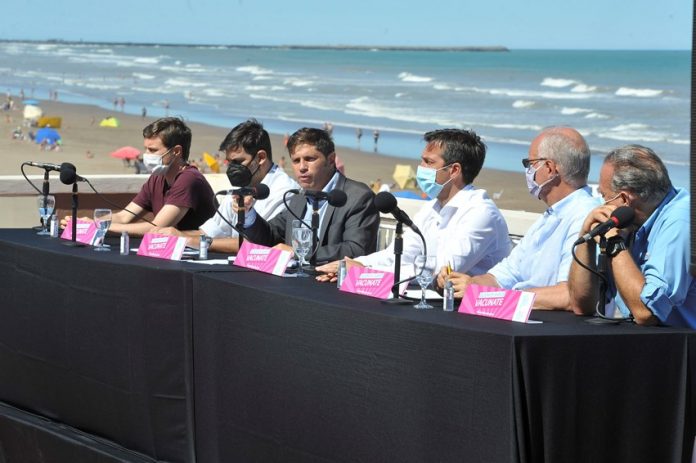 El gobernador Axel Kicillof visitó (23/2)el municipio de Necochea, donde se reunió con intendentes para analizar la temporada extendida, y actualizar la situación epidemiológica en la provincia de Buenos Aires. También ofreció una conferencia de prensa junto al jefe de Gabinete, Carlos Bianco; los ministros, de Salud, Daniel Gollan; de Producción, Ciencia e Innovación Tecnológica, Augusto Costa; de Seguridad, Sergio Berni; y el intendente local, Arturo Rojas.