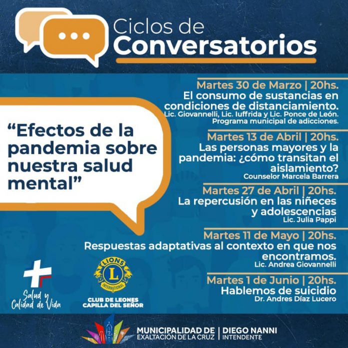 Entre los temas a tratar, se encuentran los efectos de la pandemia sobre la salud mental. Las charlas serán abiertas a la comunidad, y se transmitirán por Zoom y redes sociales para permitir de una manera simple, el acceso a toda la comunidad.